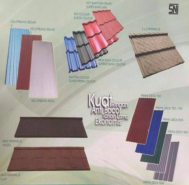 Kuat, ringan, ekonomis, tahan lama, anti bocor, anti retak , anti gempa / angin kencang, warna alami dan tidak luntur, kualitas prima, untuk bangunan modern, lebih cerah warnanya, lebih rapi, lebih awet. Selain mempercantik desain eksterior rumah anda, terdapat beberapa keunggulan yang membuatnya genteng ini banyak dipilih oleh masyarakat, yakni lebih tahan lama, ringan, tahan gempa, serta memiliki beragam bentuk yang lebih menarik. Genteng ini merupakan salah satu jenis genteng metal yang. Marketing staff call / sms / wa 08175248818. 74 cm type victory : Harga prima roof genteng metal minimalis trendy colour 2x3 dan 2x4. Berdiri sejak 20 tahun yang lalu dan berasal dari kota yogyakarta. Deskripsi (p x l x t) harga. Depo galvalum > genteng metal > prima roof. Sesuai dengan kebutuhan genteng masa kini dan untuk informasi tentang harga genteng metal prima roof hubungi customer service kami. Genteng metal prima roof distributor jual produk genteng metal multiroof sakura roof suryaroof type minimalis lapis pasir berpasir harga murah di jakarta tangerang depok bogor bekasi bandung serang cilegon. Kami melayani pemesanan genteng metal pasir beserta nok wuwungan atau bubungan genteng metal. Campuran lainnya adalah aluminium, zinc, dan silicon dengan komposisi 55% alumunium, 43,5% zinc dan 1,5% silicon.
